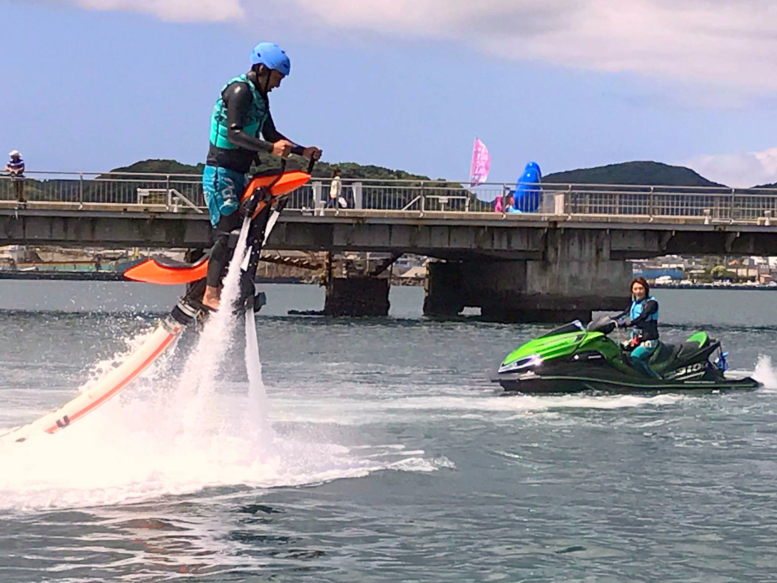 千葉県館山市の海岸にて「ハイドロスポーツ体験サービス」を開催中。インスタ映え間違いなしの「水圧で空中を浮遊する感覚」を是非ご体験ください。